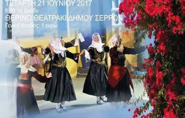 Ο Λαογραφικός Όμιλος Βλάχων και Φίλων «ΛΑΪΛΙΑΣ» Ν. Σερρών, διοργανώνει και σας προσκαλεί στο 10ο «Χορευτικό Πανόραμα», την Τετάρτη, 21 Ιουνίου 2017, στις 8:30 το βράδυ στο Θερινό Θεατράκι του Δήμου Σερρών.
