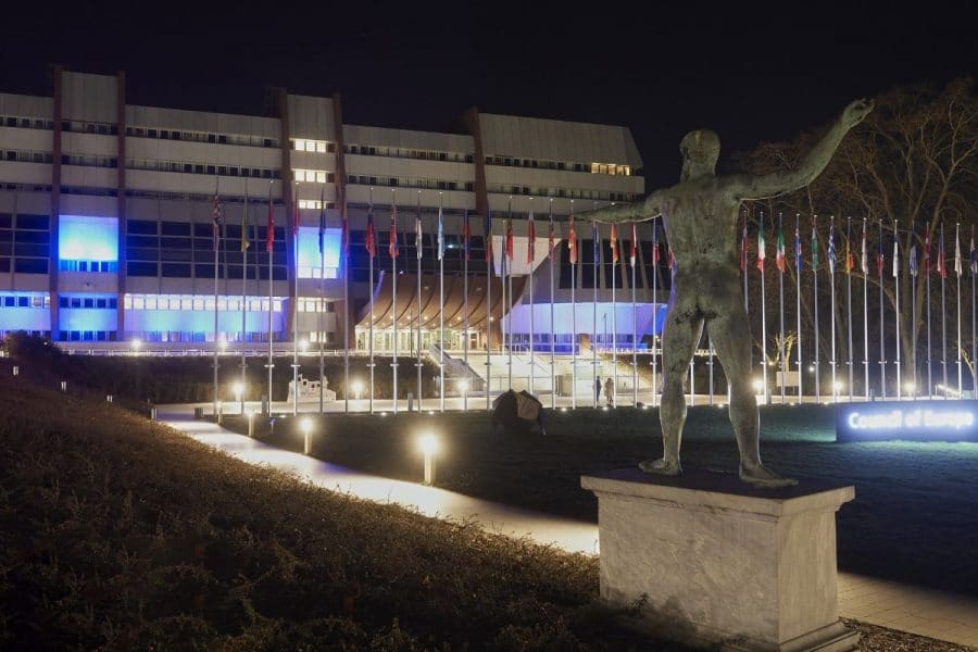 Στα χρώματα της Ελλάδας φωταγωγήθηκε η πρόσοψη του Συμβουλίου της Ευρώπης στο Στρασβούργο, στο πλαίσιο του επετειακού εορτασμού των 200 χρόνων από την έναρξη της Επανάστασης του 1821.