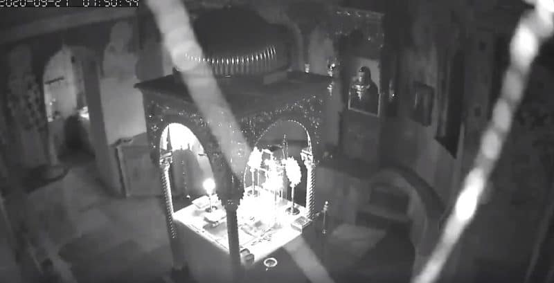 Σύμφωνα με την σελίδα του Ιερού Ναού Ι.Ν. Πρωτάτου Καρυών -Άξιον Εστί, σοβάδες έπεσαν, τα λάδια από τα κανδήλια γέμισαν το δάπεδο και ο πάτερ ήρεμος συνεχίζει να τρώει το αντίδωρο μετά την θεία Κοινωνία..