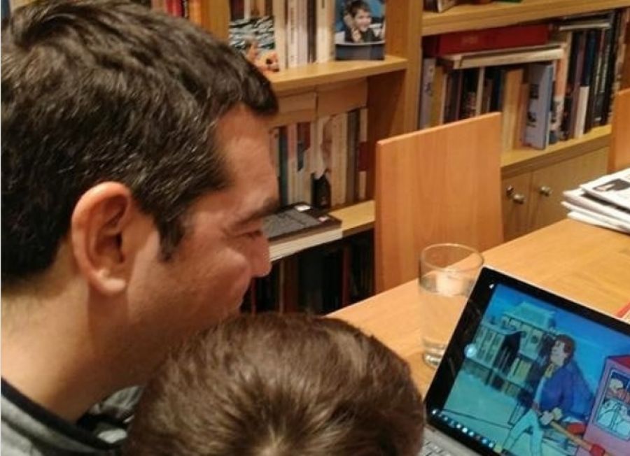Στην ανάρτησή του ο κ. Τσίπρας ανήρτησε δύο φωτογραφίες, μια αγκαλιά με τον γιο του και μία να εργάζεται στον υπολογιστή του και τονίζει: