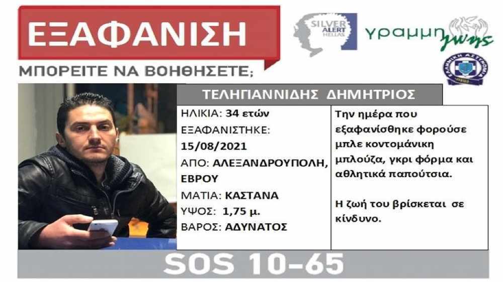 Νεκρός βρέθηκε σε ερημική περιοχή κοντά στην Ιάνα Αλεξανδρούπολης ο 34χρονος Δημήτρης Τεληγιαννίδης.
