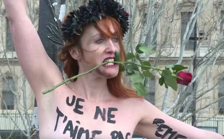 «Δεν σκοτώνει κανείς ποτέ από αγάπη», «για το καλύτερο, όχι το χειρότερο», «δεν σε αγαπώ έως θανάτου», ήταν ορισμένα από τα συνθήματα που είχαν γράψει στο γυμνό στήθος τους οι ακτιβίστριες, οι οποίες κρατούσαν, επίσης, καπνογόνα κόκκινου καπνού.