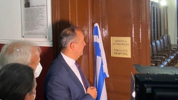 «Η ονομασία της αίθουσας συσκέψεων του Διοικητηρίου σε αίθουσα συσκέψεων “Νικόλαος Μάρτης”, πέρα από τη συμβολική της σημασία, έχει και ουσιαστική, διότι αποδίδει την οφειλόμενη τιμή σε έναν άνθρωπο, που συνέδεσε το όνομά του με το ιστορικό αυτό κτίριο» σημείωσε.