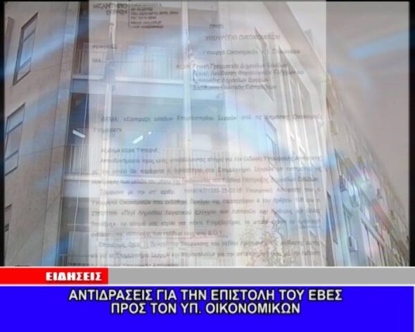 Το θέμα αναδείχτηκε χθες μέσα από την τηλεόραση του Τηλέ επιλογές όπου παρουσιάστηκε η επιστολή που έχει σταλεί ήδη από τον Ιούνιο στον υπουργό οικονομικών Γιάννη Στουρνάρα. Το θέμα προκάλεσε την έκπληξη αλλά και την αντίδραση μελών της αντιπολιτευσης του διοικητικού συμβουλίου του ΕΒΕΣ