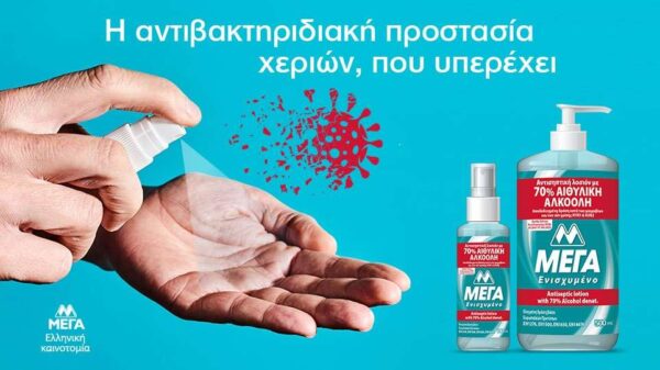 Η αντιβακτηριδιακή λοσιόν για τα χέρια ΜΕΓΑ, είναι ο αξιόπιστος σύμμαχός σας για καθημερινή αντιβακτηριδιακή προστασία.