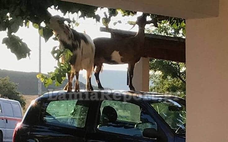 Τα δύο συμπαθέστατα – κατά τα άλλα – κατσίκια, βρήκαν το συγκεκριμένο αυτοκίνητο ως μέσο για να προσεγγίσουν το αγαπημένο τους φαγητό και έτσι άρχισε το «πάρτι».