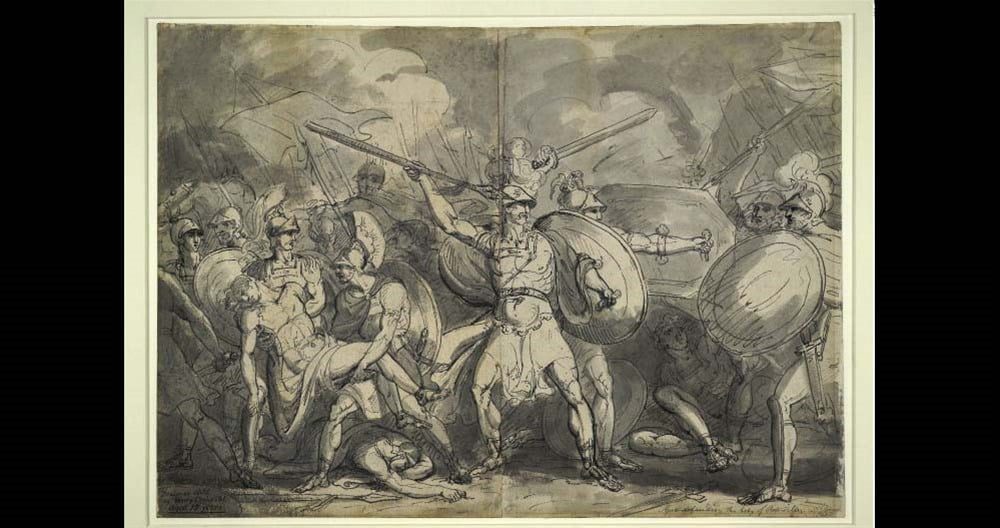 Για την αντρεία του Αίαντα υπάρχουν πολλές περιγραφές όπως η μονομαχία του με τον Έκτορα η οποία κατέληξε σε ισοπαλία, παρόλο που ο Αίας αποδείχτηκε ανώτερος. Ο Έκτορας ως ένδειξη τιμήςτου χάρισε το ξίφος του ενώ ο Αίας χάρισε στον Έκτορα την ζώνη του.
