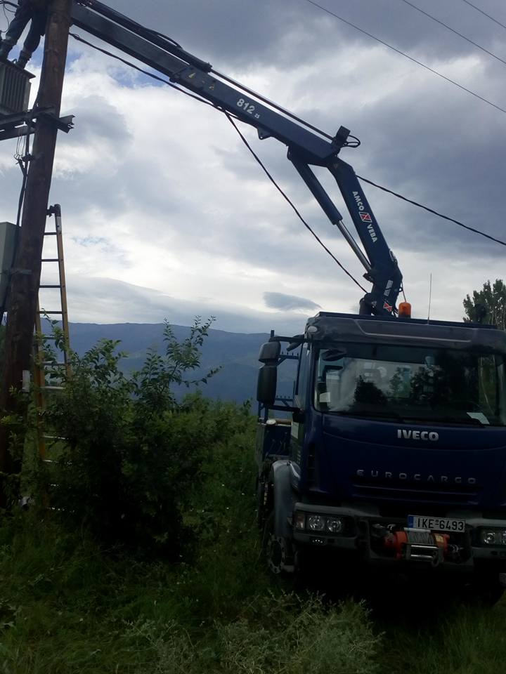 Στιγμιότυπα από τα συνέργεια της Δέη που βρέθηκαν στο Σταυροδρόμι Σιντικής για την αποκατάσταση της βλάβης, ώστε να ηλεκτροδοτηθεί κανονικά η γεώτρηση και να υδρευτεί και πάλι όλος ο οικισμός στο Σταυροδρόμι Σιντικής.