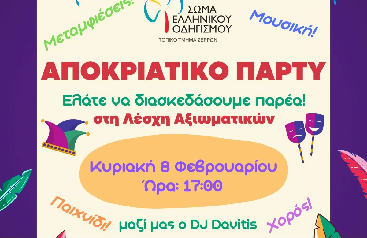 “Ετοιμάστε τις καλύτερες μεταμφιέσεις, φορέστε το μεγαλύτερό σας χαμόγελο, πάρτε τους φίλους σας και ελάτε να διασκεδάσουμε παρέα την Κυριακή 8 Φεβρουαρίου στις 5 μ.μ. στη Λέσχη Αξιωματικών !