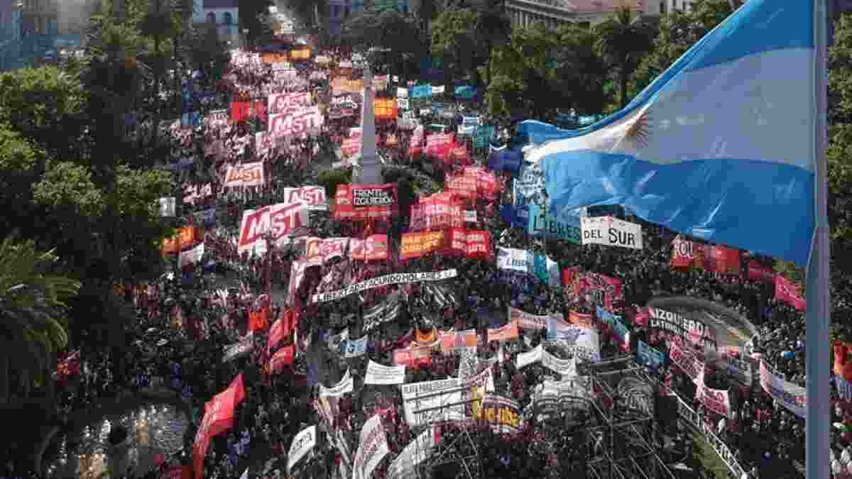 Ανάμεσα σε κρουστά, πνευστά, καπνογόνα, βαρελότα και τον καπνό από τις παρίγιας (τις ψησταριές των πλανόδιων πωλητών) στους δρόμους, οι συμμετέχοντες στην κινητοποίηση καταφέρθηκαν εναντίον του ΔΝΤ, αλλά και της κυβέρνησης της κεντροαριστεράς, στην οποία προσάπτουν ότι ενστερνίζεται τη συμφωνία για την αποπληρωμή 44 δισεκ. δολαρίων ως το 2024. Και άρα, ότι ενστερνίζεται το πρόγραμμα περαιτέρω δημοσιονομικής προσαρμογής σε μια χώρα όπου το ποσοστό της φτώχειας έχει ήδη φθάσει το 40%.