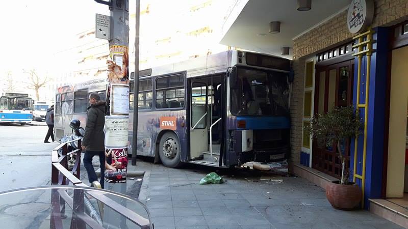 Από την πρόσκρουση σημειώθηκαν υλικές ζημιές τόσο στο λεωφορείο όσο και στο κατάστημα.