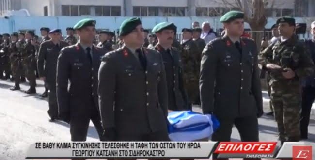 Η κόρη του Γεώργιου Κατσάνη, Λίνα, με μάτια βουρκωμένα και τρεμάμενη φωνή αποχαιρέτησε τον πατέρα της μιλώντας για το ήθος του, τα υψηλά ιδανικά του, την αξιοπρέπεια που τον διέκρινε, αλλά και για τα αισθήματα αγάπης που γνώρισε η οικογένεια του ήρωα Ταγματάρχη από επώνυμους και ανώνυμους όλα αυτά τα χρόνια μετά τον τραγικό αλλά ηρωικό θάνατό του.