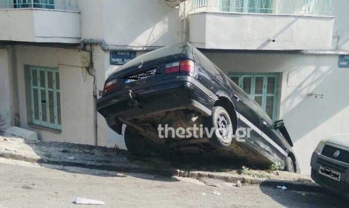 Ένα αυτοκίνητο που κινούνταν στην περιοχή της Άνω Πόλης στη Θεσσαλονίκη, εξετράπη της πορείας του και κατέληξε στον τοίχο οικίας.