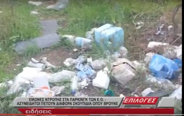 Εικόνες ντροπής στα πάρκιγκ των Ε.Ο της χώρας.Ασυνείδητοι πετούν σκουπίδια όπου βρούν(video)