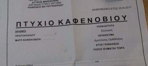 Viral έχει γίνει το πτυχίο... καφενόβιου που μοιράζει ένας ευφάνταστος ιδιοκτήτης καφενείου στην Πτολεμαΐδα ...
