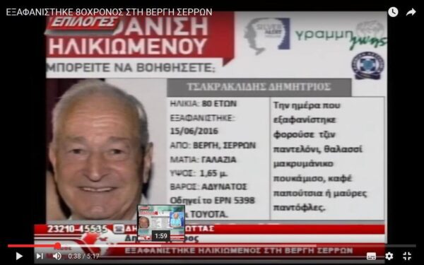TΡΑΓΙΚΗ ΕΞΕΛΙΞΗ . ΝΕΚΡΟΣ ΒΡΕΘΗΚΕ ΤΕΛΙΚΑ Ο 80ΧΡΟΝΟΣ ΑΠΟ ΤΗΝ ΒΕΡΓΗ ΣΕΡΡΩΝ
