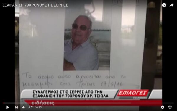 Τον 79χρονο Χρήστο Τσιώλα, τα ίχνη του οποίου χάθηκαν το μεσημέρι της Τρίτης 17 Μαΐου, από την πόλη των Σερρών αναζητούν οι συγγενείς και φίλοι. ...