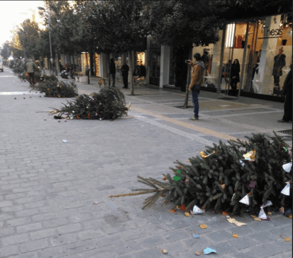 Βανδάλισαν τα χριστουγεννιάτικα δέντρα στο Πεζόδρομο Σερρών