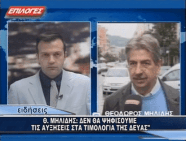 ΜΗΛΙΔΗΣ ΔΕΝ ΘΑ ΨΗΦΙΣΟΥΜΕ ΤΙΣ ΑΥΞΗΣΕΙΣ ΣΤΑ ΤΙΜΟΛΟΓΙΑ ΤΗΣ ΔΕΥΑΣ