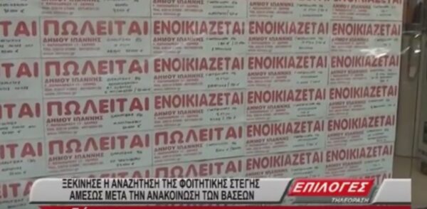 ΞΕΚΙΝΗΣΕ Η ΑΝΑΖΗΤΗΣΗ ΤΗΣ ΦΟΙΤΗΤΙΚΗΣ ΣΤΕΓΗΣ AΜΕΣΩΣ ΜΕΤΑ ΤΗΝ ΑΝΑΚΟΙΜΩΣΗ ΤΩΝ ΒΑΣΕΩΝ(VIDEO)