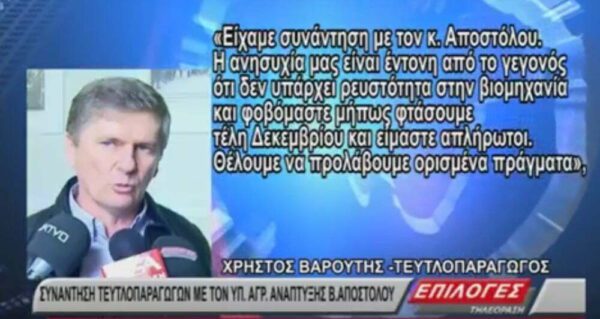 ΣΥΝΑΝΤΗΣΗ ΤΕΥΤΛΟΠΑΡΑΓΩΓΩΝ ΜΕ ΤΟΝ ΥΠOΥΡΓΟ ΑΓΡΟΤΙΚΗΣ ΑΝΑΠΤΥΞΗΣ Β. ΑΠΟΣΤΟΛΟΥ(VIDEO)