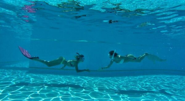 Οι …γοργόνες της διπλανής πόρτας, μάλιστα, με τη λήξη των υδάτινων μαθημάτων παίρνουν και πτυχίο, καθώς το συγκεκριμένο καταδυτικό κέντρο είναι από τα ελάχιστα παγκοσμίως, που μπορεί να πιστοποιήσει την πρωτότυπη αυτή δεξιότητα.