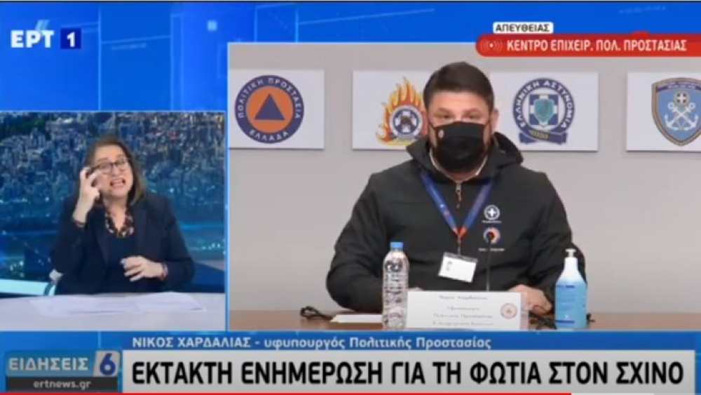 «Θα είναι μία δύσκολη βραδιά», δήλωσε στην έκτακτη ενημέρωση για τη μεγάλη πυρκαγιά στον Σχίνο Κορινθίας ο υφυπουργός Πολιτικής Προστασίας και Διαχείρισης Κρίσεων, Νίκος Χαρδαλιάς, ο οποίος επισήμανε ότι έχουν καεί 20.000 στρέμματα σημειώνοντας ότι «όλος ο μηχανισμός του κράτους είναι εκεί» και προσθέτοντας ότι: «δίνουμε μάχη σε δύσκολες συνθήκες».