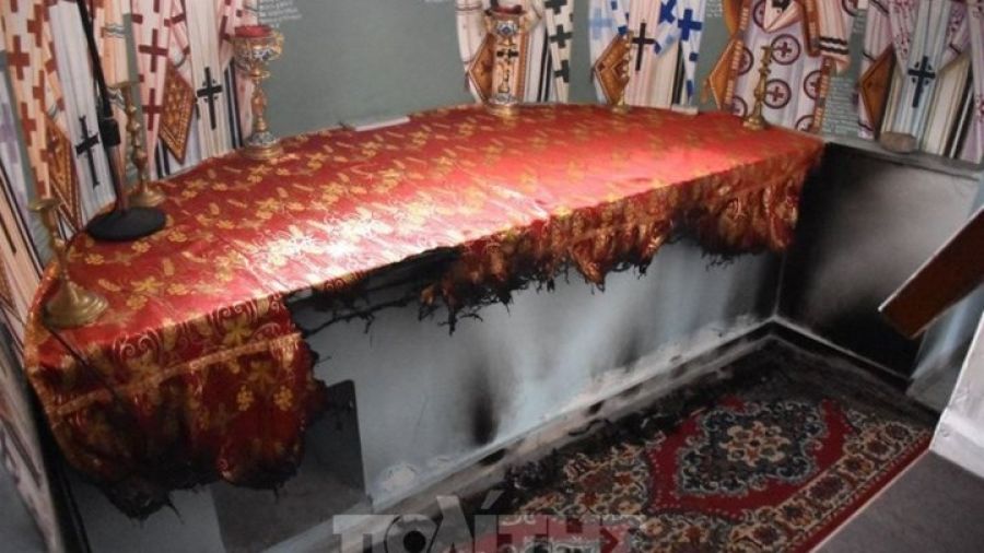 Στόχος των δραστών δεν ήταν η κλοπή αλλά να προκαλέσουν ζημιές στον ιερό χώρο, αφού πήραν το καντήλι και το τοποθέτησαν στην Αγία Τράπεζα με αποτέλεσμα να πάρει φωτιά το κάλυμμα της Αγίας Τραπέζης και να επεκταθεί και στον χώρο της Αγίας και Ιεράς Πρόθεσης, στον χώρο δηλαδή όπου γίνεται η προετοιμασία των προσκομιζομένων δώρων με σκοπό την τέλεση της Θείας Ευχαριστίας.