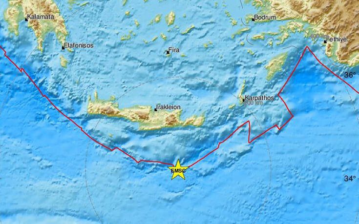 Υπενθυμίζεται ότι στις 7:18 σήμερα το πρωί καταγράφηκε σεισμική δόνηση 4,6 Ρίχτερ- 4,9, σύμφωνα με το Ευρωμεσογειακό Σεισμολογικό Κέντρο- με επίκεντρο νότια της Ιεράπετρας.