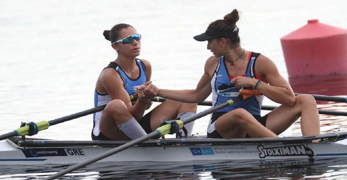 Οι δύο νεαρές κωπηλάτριες, ύστερα από ένα δύσκολο αγώνα, πρώτευσαν στο διπλό σκιφ.