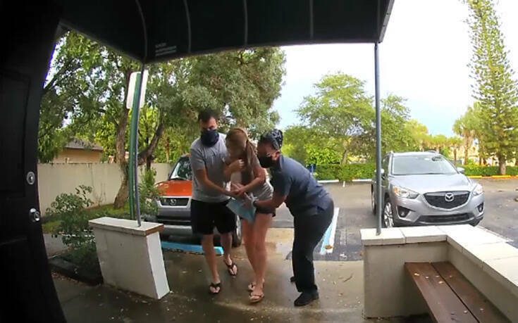 Η γυναίκα είχε πάει να γεννήσει στην κλινική Peaceful Pregnancy Pathways στο Παλμ Μπιτς της Φλόριντα. Η κάμερα στην είσοδο του κτιρίου δείχνει την έγκυο να φτάνει και πριν καν προλάβει να μπει μέσα σπρώχνει και το μωρό γεννιέται, ενώ εκείνη είναι όρθια, στηριζόμενη από το σύζυγό της και την μαία της Sandy Lobiana!