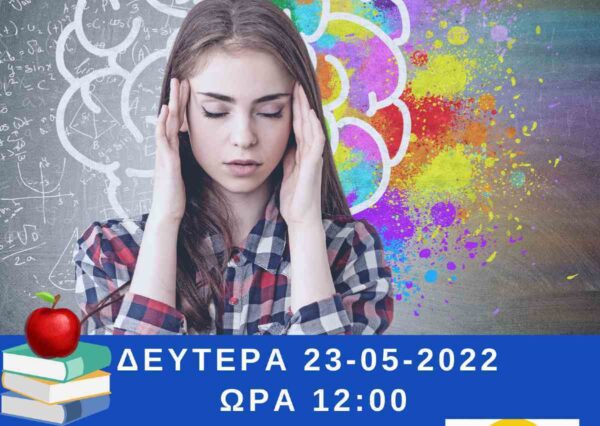 Το Τμήμα της Δημόσιας Υγείας σε συνεργασία με το ΚΕΠ Υγείας και το Ελληνικό Διαδημοτικό Δίκτυο Υγιών Πόλεων σας προσκαλούν στη Διαδικτυακή Δράση με θέμα «Πανελλήνιες Εξετάσεις: Διαχείριση άγχους προετοιμασίας & αποτελεσμάτων», που πραγματοποιείται τη Δευτέρα 23 Μαΐου και ώρα 12:00