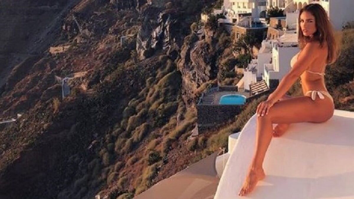 Ανήρτησε φωτογραφίες της στον λογαριασμό της στο instagram με καυτά μπικίνι αλλά και ολόγυμνη μέσα στο τζακούζι με θέα την Καλντέρα.