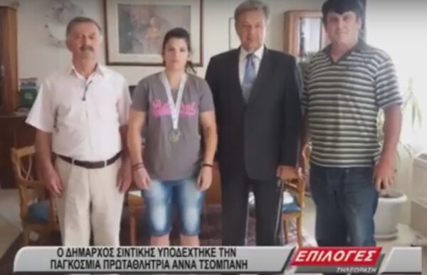 Την Παγκόσμια Πρωταθλήτρια Κικ Μπόξινγκ Άννα Τσομπάνη υποδέχτηκε στο δημαρχείο Σιντικής ο Δήμαρχος Φώτης Δομουχτσίδης. Ο Δήμαρχος εξέφρασε τα συγχαρητήριά του στην Άννα Τσομπάνη και στους γονείς της για την μεγάλη επιτυχία στο πρόσφατο παγκόσμιο πρωτάθλημα Kick Boxing που διοργανώθηκε στην Αθήνα.