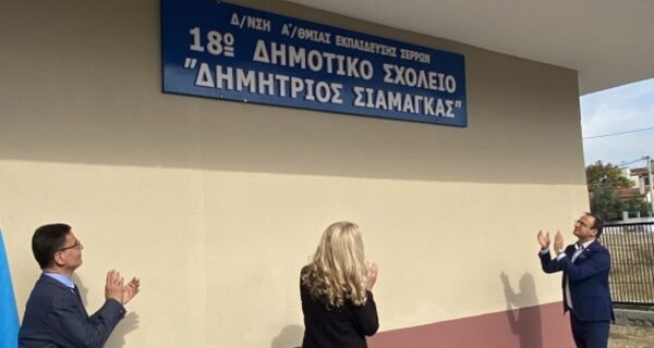 Ο Δήμαρχος Σερρών Αλέξανδρος Χρυσάφης έκανε τα αποκαλυπτήρια της νέας εισόδου του 18ου Δημοτικού Σχολείου «Δημήτριος Σιαμάγκας» μαζί με τον Αντιδήμαρχο Παιδείας Γιάννη Δεσποτίδη και τη σύζυγο του εκλιπόντος Αναστασία Τσιγκρά – Ζήκα παρουσία μελών της οικογένειας του τέως Αντιδημάρχου, των Βουλευτών Σερρών Φωτεινής Αραμπατζή και Θεόφιλου Λεονταρίδη, του Διευθυντή της Πρωτοβάθμιας Εκπαίδευσης Σερρών Ιωάννη Καραβασίλη, του Προέδρου του Συλλόγου Εκπαιδευτικών Πρωτοβάθμιας Εκπαίδευσης Ν.Σερρών «Ο Εμμ. Παπάς» Πασχάλη Στεφάνου, πλήθους εκπαιδευτικών, μαθητών και γονέων.