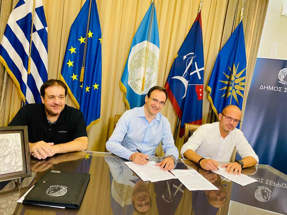 Σύμβαση για ένα νέο έργο ασφαλτοστρώσεων στον Δήμο Σερρών υπέγραψαν σήμερα, Παρασκευή 24 Ιουνίου 2022 ο Δήμαρχος Σερρών Αλέξανδρος Χρυσάφης και ο ανάδοχος Πολύδωρος Χανλίογλου.