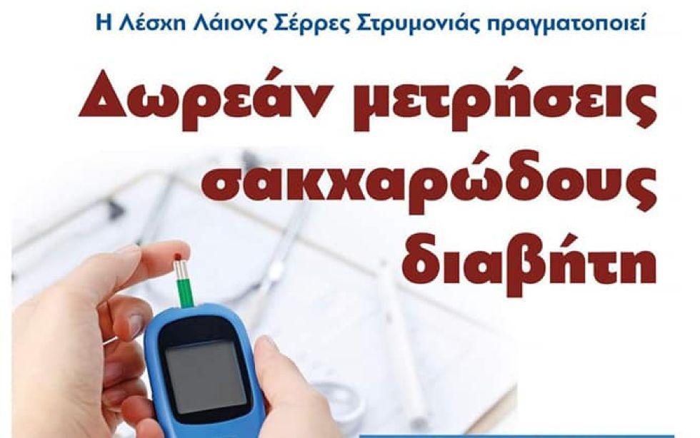 Η Λέσχη Λάιονς Σέρρες Στρυμονιάς πραγματοποιεί δωρεάν μετρήσεις σακχαρώδους διαβήτη, την Κυριακή 20 Νοεμβρίου 2022, στην πλατεία Ελευθερίας, από τις 10.30 πμ μέχρι τη 1:00 μμ.