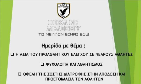 Προχωρώντας με συνέπεια προς την υλοποίηση του ετήσιου προγραμματισμού της ακαδημίας μας, της οποίας κυρίαρχο μέλημα αποτελεί η εκπαίδευση και ανάπτυξη των νεαρών ποδοσφαιριστών, σας καλούμε να συμμετάσχετε στην ημερίδα με θέμα: