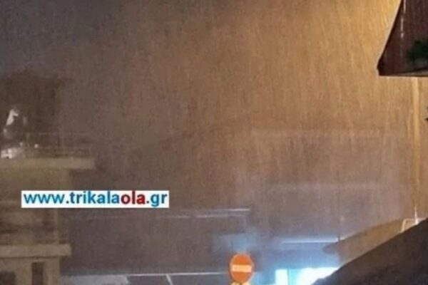 H νύχτα έγινε μέρα και οι δρόμοι ποτάμια στα Τρίκαλα τα ξημερώματα της Δευτέρας, μιας και ισχυρή καταιγίδα έπληξε την πόλη.