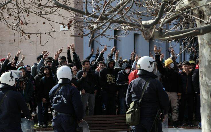 Το πρωινό σκηνικό έντασης στη Μυτιλήνη συνεχίστηκε και τις νυχτερινές ώρες.