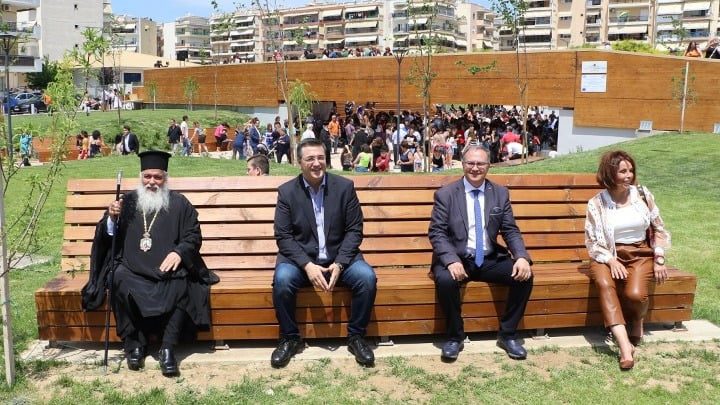 Το πάρκο της Νικόπολης, ένας «πυρήνας» πρασίνου στη δυτική Θεσσαλονίκη, εγκαινιάστηκε σήμερα από τον περιφερειάρχη Κεντρικής Μακεδονίας, Απόστολο Τζιτζικώστα και τον δήμαρχο Παύλου Μελά, Δημήτρη Δεμουρτζίδη.