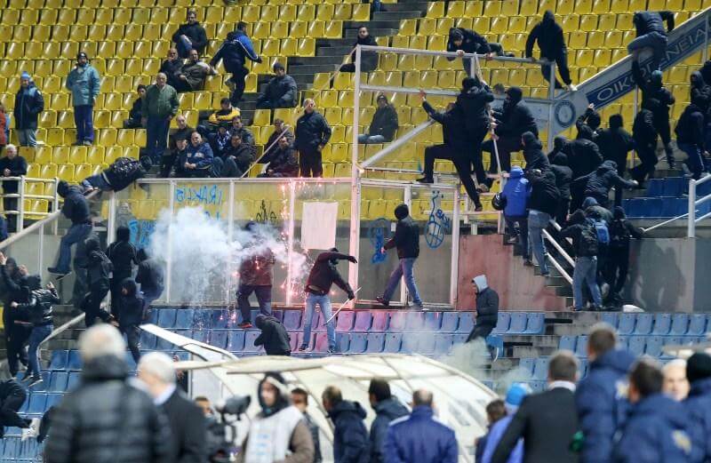Υπήρξαν μάχες σώμα με σώμα των οπαδών με τους αστυνομικούς, με τους οπαδούς να χρησιμοποιούν ό,τι βρίσκουν μπροστά τους.