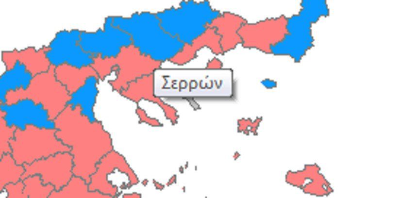 Τα πρώτα αποτελέσματα που μεταδόθηκαν για τον νομό Σερρών σε 5 από 492 τμήματα