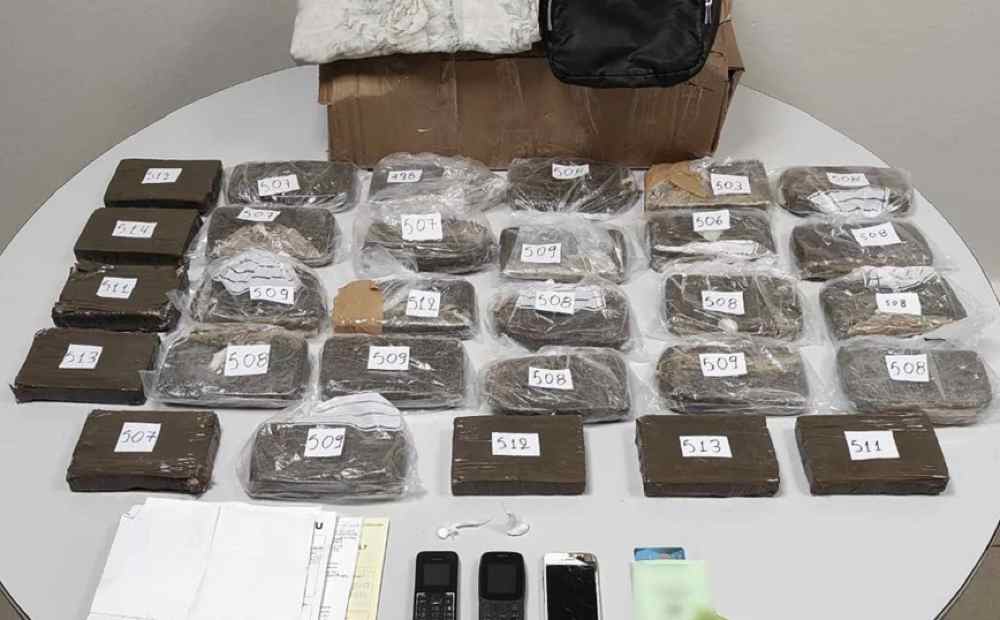 Σημειώνεται ότι κατά την καταδίωξη έριξε από το παράθυρο του οχήματός της ένα τσαντάκι ώμου και 1 υφασμάτινη μαξιλαροθήκη που περιείχαν 25 δέματα ηρωίνης, συνολικού βάρους 14 κιλών και 750 γραμμαρίων, τα οποία είχε παραλάβει νωρίτερα ως δέμα από μεταφορική εταιρεία στην περιοχή του Καλοχωρίου.