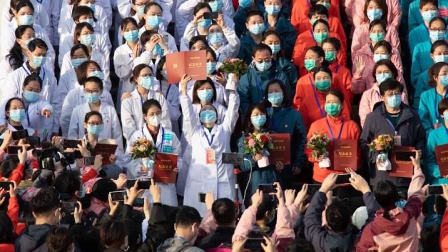 Οι σκηνές θύμιζαν την ανέγερση μέσα σε λίγες ημέρες ενός νοσοκομείου εκστρατείας στην Ουχάν πέρυσι, την πόλη από όπου ξεκίνησε η πανδημία του κορονοϊού.