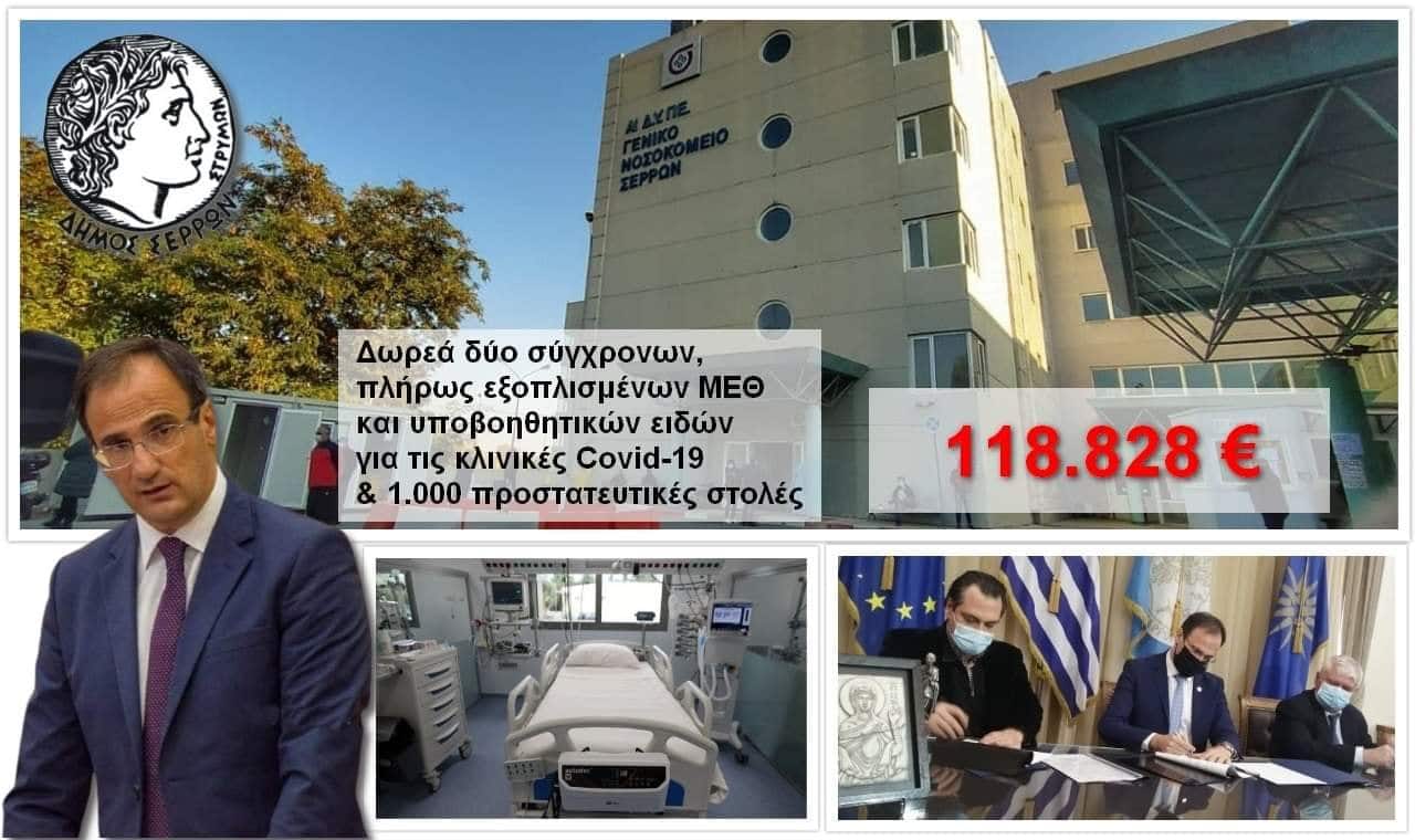 Και με την τελική υπογραφή η δωρεά αγάπης προς το νοσοκομείο Σερρών είναι γεγονός. Με ομόφωνη απόφαση του δημοτικού συμβουλίου τα χρήματα από την πολιτεία των Ευχών διατίθενται στο νοσοκομείο Σερρών για δύο υπερπλήρεις μονάδες εντατικής Θεραπείας