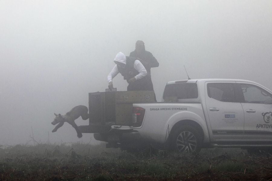 Η Σοφία και ο Λουίτζι μεταφέρθηκαν από την Ομάδα Άμεσης Επέμβασης του ΑΡΚΤΟΥΡΟΥ σε δασική περιοχή και εν μέσω πυκνής ομίχλης αφέθηκαν ελεύθεροι μακριά από ανθρώπινες εγκαταστάσεις και οικισμούς.