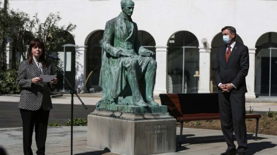 Κατά την τελετή, η κ. Σακελλαροπούλου απηύθυνε χαιρετισμό, υπογραμμίζοντας ότι ο Καποδίστριας είναι χωρίς αμφιβολία μια από αυτές τις προσωπικότητες που έχουν αφήσει ανεξίτηλα ίχνη στην ελληνική αλλά και την ευρωπαϊκή ιστορία. Ειδικότερα, σημείωσε ότι «υπήρξε ένας από τους πιο διακεκριμένους Ευρωπαίους πολιτικούς και διπλωμάτες του καιρού του, που υπηρέτησε ως υπουργός Εξωτερικών του Τσάρου και παρευρέθηκε στο περίφημο Συνέδριο του Λάυμπαχ [της σημερινής Λιουμπλιάνας], του οποίου επίσης τη 200ή επέτειο γιορτάζουμε φέτος».