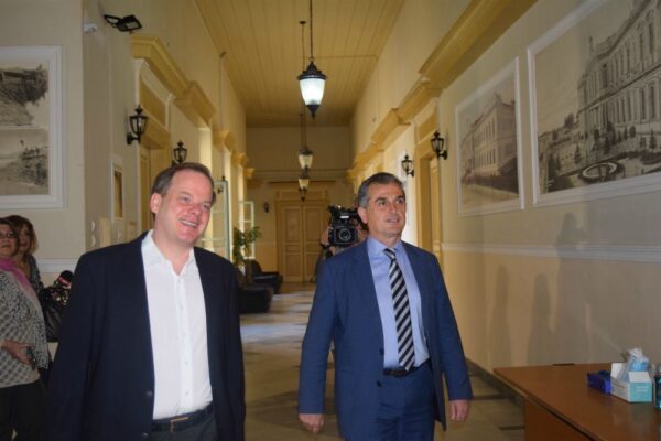 Τον Υπουργό Υποδομών και Μεταφορών, κ. Κώστα Καραμανλή υποδέχθηκε, σήμερα 25-5-2020, στο Διοικητήριο των Σερρών ο Αντιπεριφερειάρχης Σερρών, κ. Παναγιώτης Σπυρόπουλος