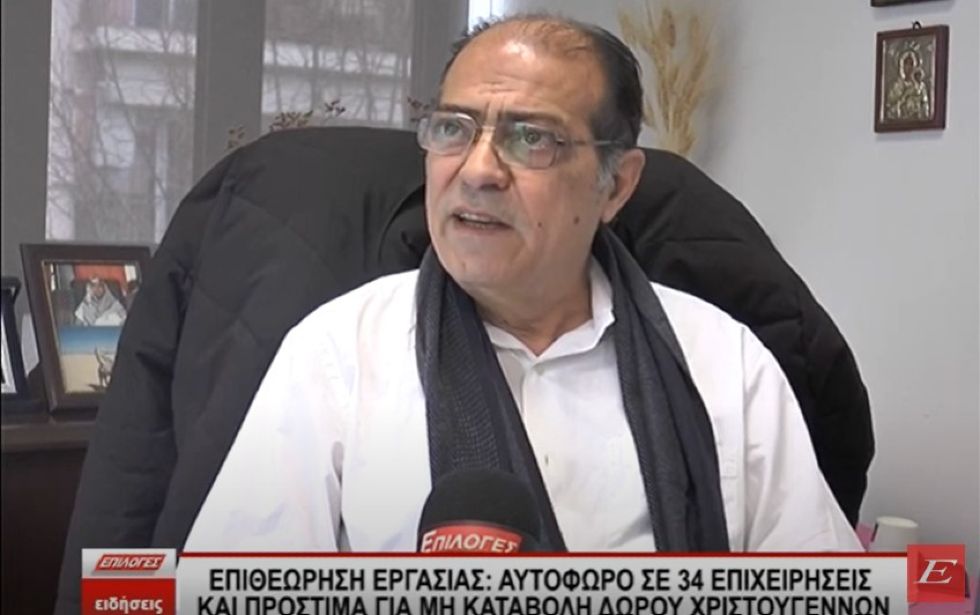 Για ελλιπή μηχανισμό στην Επιθεώρηση Εργασίας έκανε λόγο ο πρόεδρος του Εργατικού Κέντρου Σερρών, μιλώντας στην κάμερα της τηλεόρασης ΕΠΙΛΟΓΕΣ. Με αφορμή τα στοιχεία που δόθηκαν στη δημοσιότητα δεκάδες επιχειρηματίες οδηγήθηκαν στο αυτόφωρο λόγω μη καταβολής του δώρου Χριστουγέννων ενώ υπήρχαν και αρκετές περιπτώσεις παραβίασης του εορταστικού ωραρίου